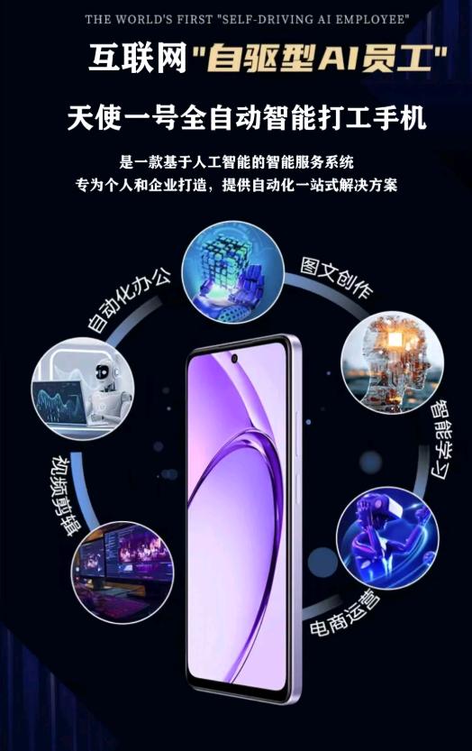 AI智能打工手机,互联网AI自驱员工,智能办公,智能剪辑,智能图文创作、智能发作品、智能看广告赚金币等等,24小时为你打工,高效接单服务。总部提供技术,你只需负责保证手机有网有电,AI智能打工手机自主学习自我优化,自我轻松玩转各大平台,AI全自动创收,自动到账,解放双手,被动收入。