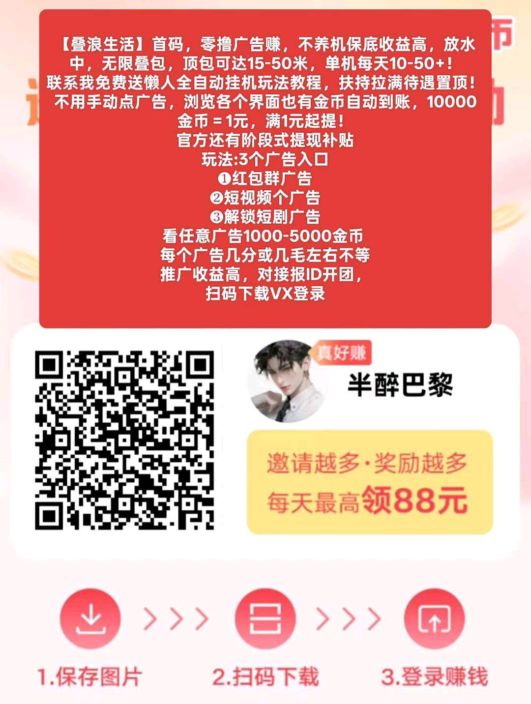 【叠浪生活】首码零撸,可全自动挂机,不养机保底收益高,放水中,无限叠包,顶包可达15-50米,单机每天10-50+!