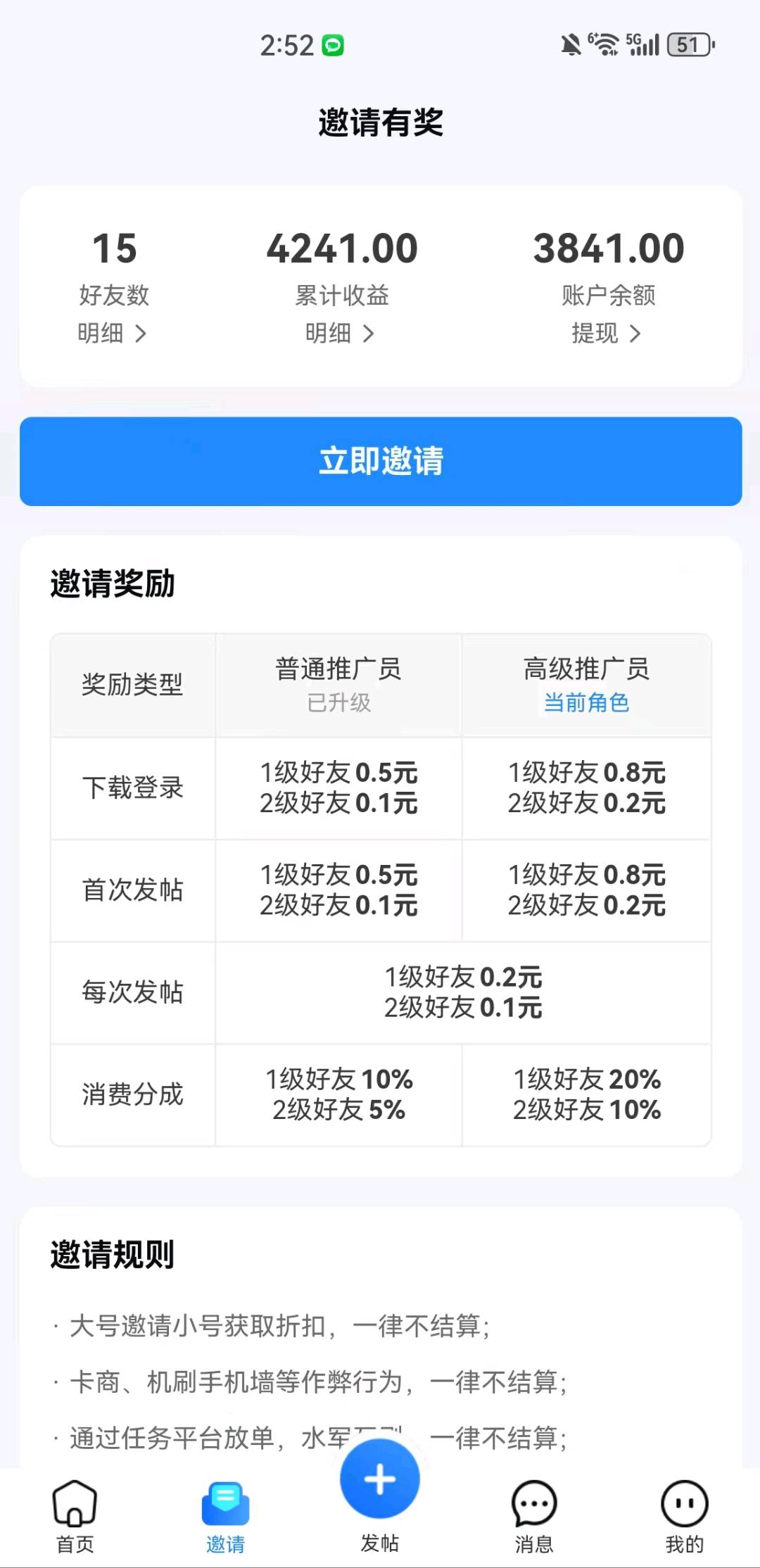 好友每次发帖0.2元,上不封顶,相比老版本,好友发的帖子哪怕仅搜索可见也有奖励(以前老版规则仅搜索没有,现在变得更加给力!)
